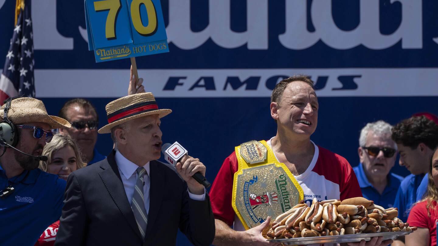 E a comemoração não foi completa! Apesar de ter conquistado o título pela 17ª vez em 20 participações, Joey ficou aquém do seu recorde de 2021, quando ele abocanhou 76 unidades. O que está acontecendo com o mestre? Será que o governo está bloqueando seu verdadeiro potencial ou será que os hot dogs estavam em um tamanho diferente?
